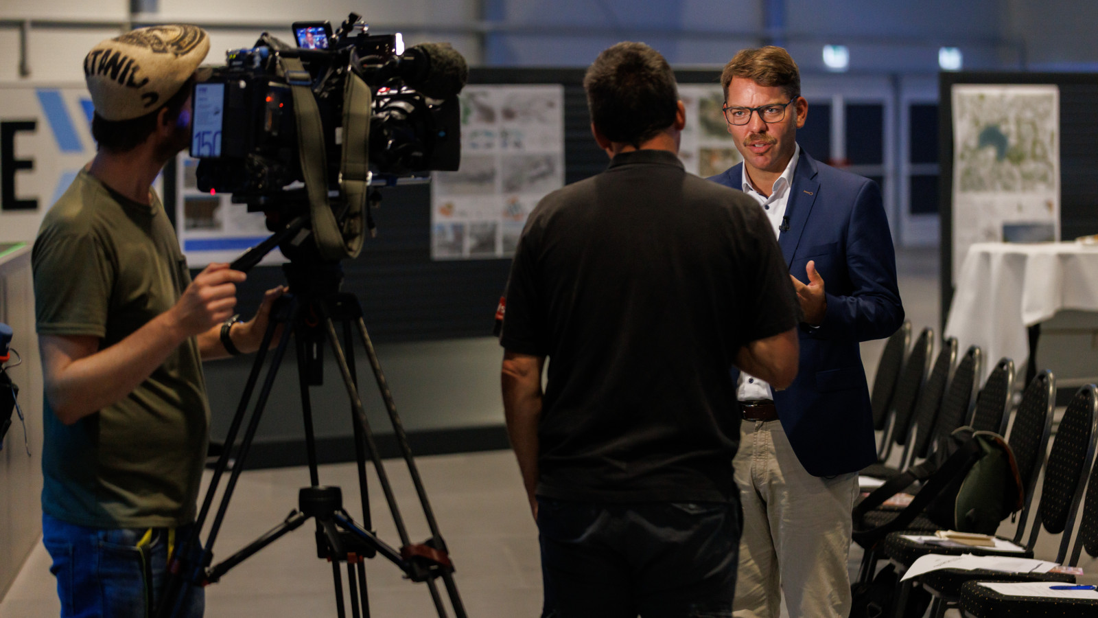 Am vergangenen Freitag, dem 26. August, fand die Abschlussveranstaltung des Revierknotens Raum in der Kulturmuschel in Jülich statt. Nach einem Grußwort der zugeschalteten NRW-Wirtschaftsministerin Mona Neubaur und des Jülicher Bürgermeisters Axel Fuchs haben die rund 120 Gäste auf den bisherigen Erarbeitungsprozess der Raumstrategie Rheinisches Revier 2038+ zurückgeblickt.