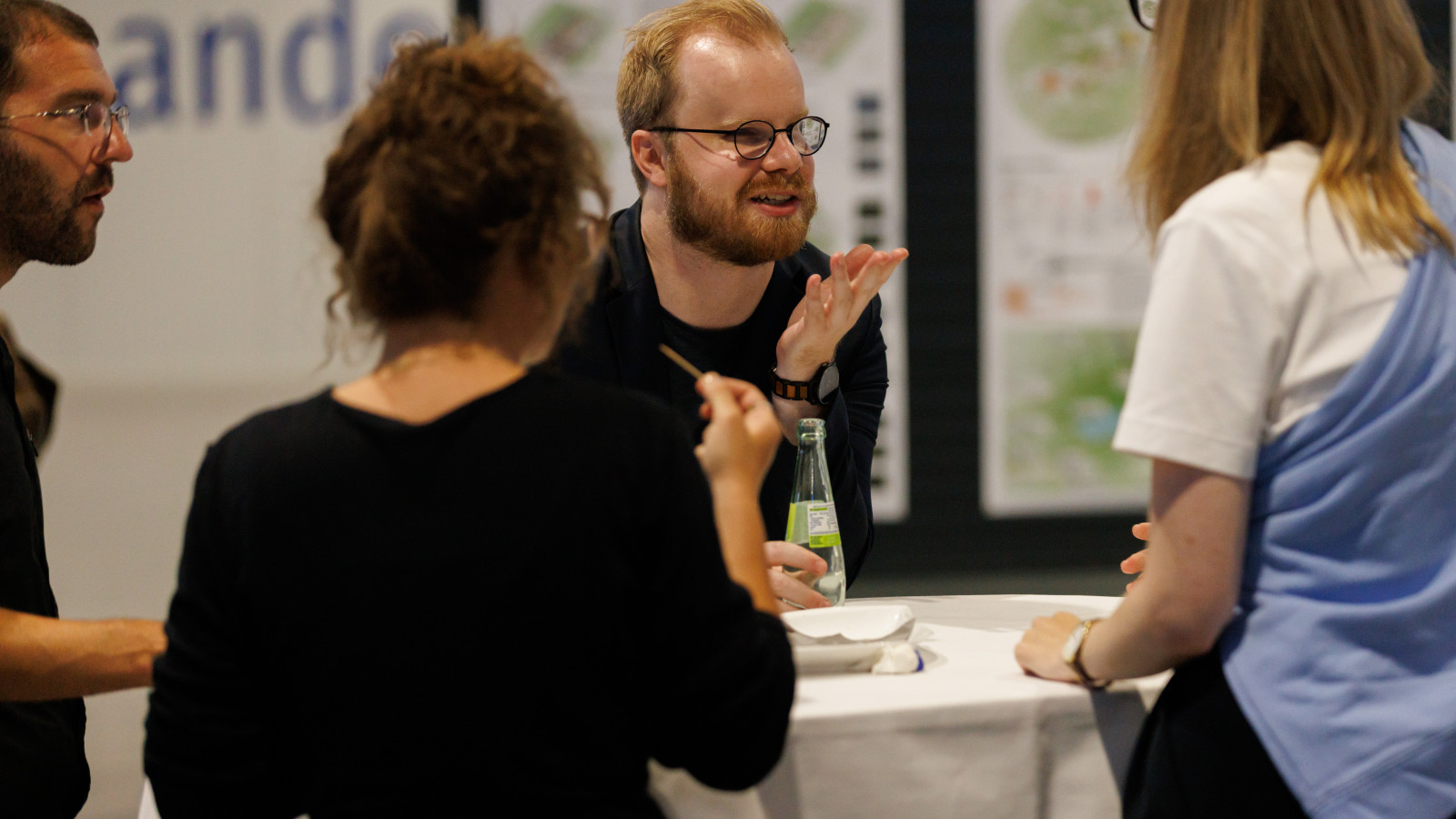 In einem ersten Zwischenfazit wurden zwölf „Realitäten“ vorgestellt, die der Revierknoten als erste Erkenntnisse aus den Arbeiten der Mehrfachbeauftragung und den bisherigen Ergebnissen der Beteiligung ableiten konnte. Dabei wurden unter anderem die Bedeutung von Kooperation und Zusammenarbeit innerhalb der Region, der schonende Umgang mit der Ressource Boden sowie die frühzeitige Absicherung von Handlungsoptionen für die Zukunft betont, um die ambitionierte Zielsetzung einer Modellregion für den European Green Deal Wirklichkeit werden zu lassen.